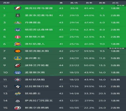 随着湖人净胜17分,国王无缘5连胜,西部最新积分榜如下!火箭第5